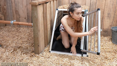 Look who we caught! It’s the tiny Rey Sanson, who is very curious and eager to find out more about the farm! In her cute cow dress, Rey awakens in the barn and discovers her cage is open. She starts to explore, but is soon locked to the milking station for her first ever session. Wow, this young HuCow has the best natural udders on a tiny frame you have ever seen! Her nipples are prepared for milking using fast rotating nipple sensitizers. Rey then gets milked with the electronic breast training machine until her teats are swollen. The farmer ends the session with a pair of clover clamps, which is now EXTRA painful after all this nipple action. Rey will need a LOT of pumping and milking to be a good HuCow, but we definitely want to invest that time, she has so much potential!