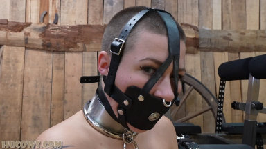 The power of the red cow milker is extreme. Our resident HuCow Emily Addams hasn’t really been milked with this machine much yet, but today she is going to experience the full power of this machine. It’s almost impossible to milk a HuCow with this device without using strict bondage AND sexual stimulation to keep their mind distracted from the painful pumping. Head shaved and tightly gagged, our cute specimen is checked by the farmer. Her udders are developing nicely!! Emily also has a permanent nose ring, as any HuCow should. With help from the magic wand on her juicy clit, Emily moans and moos through this harsh milking session. Her reward? A pair of painful clover clamps on her sensitive teats! The HuCow life isn’t easy…
